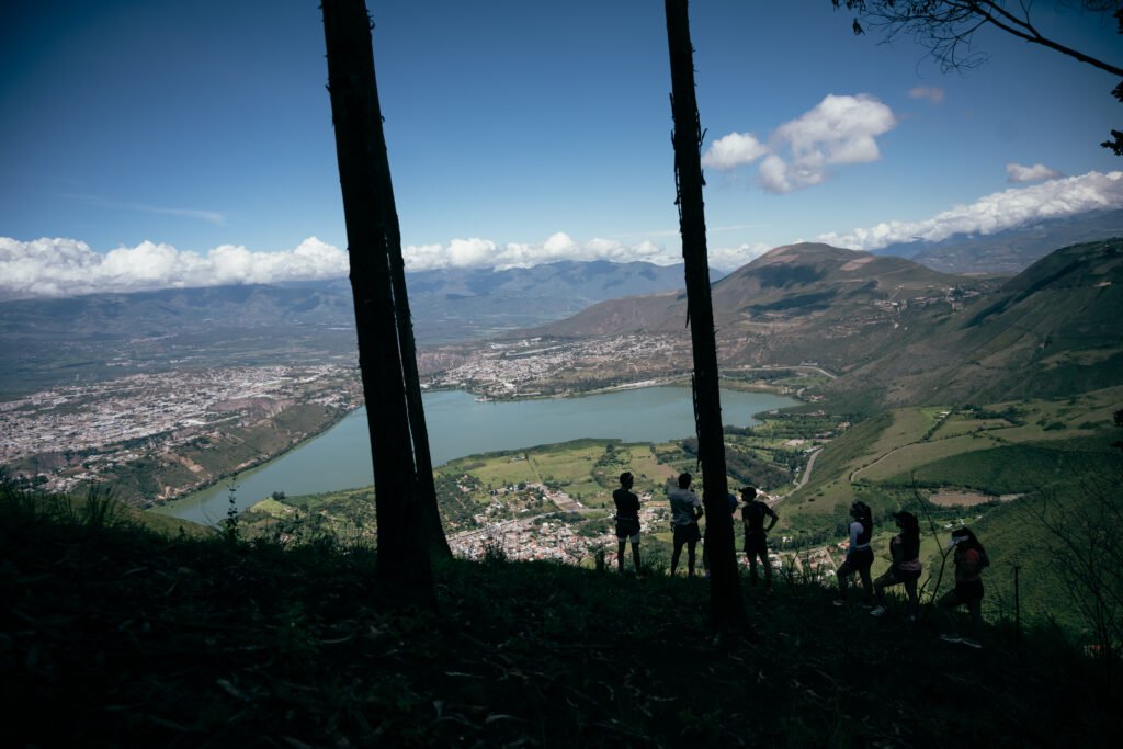 El Kilómetro Vertical arranca en las orillas de la laguna de Yahuarcocha, uno de los paisajes más icónicos del valle de Ibarra, rodeado de historia, agua y montañas que se reflejan en su superficie. Desde los primeros metros, el sendero se va inclinando y se adentra en las laderas que miran al Imbabura, regalando miradores naturales cada pocos minutos, donde el lago se hace pequeño y la “Ciudad Blanca” empieza a quedar dibujada a tus pies.​​
